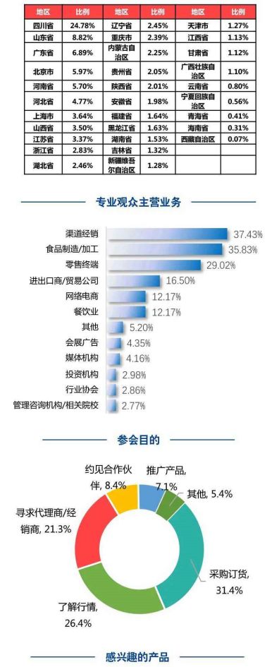 4106家企業(yè)參展 龍頭齊聚展團(tuán)活躍本屆糖酒會展覽總面積21.5萬平方米,共劃分為六大展區(qū),并在其中特設(shè)11個小型特色專區(qū)。來自42個國家和地區(qū)的4106家食品飲料、酒類、調(diào)味品、機(jī)械包裝及技術(shù)服務(wù)企業(yè)參展。其中,傳統(tǒng)酒類展區(qū)770家企業(yè)參展,茅臺、五糧液、汾酒、瀘州老窖、劍南春、郎酒、水井坊、舍得、酒鬼酒、紅星、牛欄山、豐谷、景芝、泰山、扳倒井、仰韶、寶豐、宋河、古越龍山、會稽山、塔牌、燕京啤酒等龍頭企業(yè)悉數(shù)參展;葡萄酒及國際烈酒展區(qū)有910家企業(yè)參展,云集法國、意大利、德國、阿根廷、智利、西班牙、加州等國家和地區(qū)展團(tuán)及長城、中糧名莊薈、天津王朝、挖酒網(wǎng)等知名國產(chǎn)品牌;食品及飲料展區(qū)是本次展商數(shù)量最多的展區(qū),參展商達(dá)1237家,其中進(jìn)口食品約200家,可口可樂、中國茶葉、首農(nóng)集團(tuán)、光明乳業(yè)、蒙牛乳業(yè)、今麥郎、我買網(wǎng)、天津食品集團(tuán)、來伊份、李子柒、九陽豆業(yè)、椰樹椰汁、統(tǒng)一、三只松鼠、金嗓子、好麗友、雅客、東來順等知名企業(yè)參展;調(diào)味品及配料展區(qū)共502家企業(yè),中糧糖業(yè)、安琪酵母、益海嘉里、太太樂、魯花、中糧工食、小龍坎、郫縣豆瓣、新希望味業(yè)、劉一手、天味食品、川娃子、紫林醋業(yè)、寧化府、水塔醋業(yè)等知名企業(yè)參展;食品機(jī)械展區(qū)達(dá)436家企業(yè),其中近三分之一為國際知名機(jī)械廠商;包裝展區(qū)251家企業(yè),主要來自鄆城、溫州等知名包裝產(chǎn)業(yè)聚集地。網(wǎng)紅化、功能性、個性化成為行業(yè)新趨勢在本屆糖酒會上,網(wǎng)紅化、功能性、個性化成為食品和酒類行業(yè)廠商所競逐的新賽道,帶動行業(yè)進(jìn)一步呈現(xiàn)垂類細(xì)分、渠道下沉趨勢。本屆糖酒會上,“李子柒”、“拉面說”等在電商平臺上聲名遐邇的“網(wǎng)紅”品牌首次亮相全國糖酒會,受到專業(yè)觀眾的高度關(guān)注;而“來伊份”、“三只松鼠”等“網(wǎng)紅”品牌近年來連續(xù)參加全國糖酒會,加速布局線下傳統(tǒng)渠道市場,將品牌力滲透到全國市場。另一方面,在白酒、休閑食品等品類,諸多傳統(tǒng)品牌也在包裝風(fēng)格、營銷渠道等方面進(jìn)行大膽升級,紛紛推出令人眼花繚亂的新單品“試水”,意圖爭奪年輕“新世代”消費(fèi)者的青睞。值得一提的是,“直播帶貨”成為本屆糖酒會參展企業(yè)的“標(biāo)配”。會期三天,糖酒會組委會聯(lián)合淘寶直播共同設(shè)立的“官方好物推薦”和“糖酒品牌時間”兩大主題直播間舉辦了38場直播活動,吸引超100家參展商參與直播,累計(jì)觀看量突破300萬人次。除此以外,根據(jù)展商調(diào)查統(tǒng)計(jì),共有180家參展企業(yè)在自己展位上設(shè)立直播間,線下構(gòu)建營銷體系與線上促銷“打品牌”齊頭并進(jìn)、相映成趣。功能性食品也是本屆糖酒會的一大亮點(diǎn)。前幾年,在全國糖酒會上活躍的功能性食品數(shù)量較少,主要以保健食品和運(yùn)動飲料為主。今年,大量新銳功能性食品品牌如雨后春筍般呈現(xiàn),主要聚焦于三個品類:以輔助減肥功能為主的纖體食品、面向老人小孩特殊群體的特需食品以及各種口味自熱飯為代表的方便食品。對于前兩類產(chǎn)品來說,“低卡零卡”、“低脂零脂”、“高纖維”、“低聚異麥芽糖”等名詞成為諸多參展產(chǎn)品大力宣傳的賣點(diǎn);而在方便食品領(lǐng)域,最早在第96屆全國糖酒會上以“一鳴驚人”之勢出現(xiàn)的自熱火鍋產(chǎn)品,隨著技術(shù)、渠道以及消費(fèi)者認(rèn)知的逐步成熟,在本屆糖酒會上,已發(fā)展成為涵蓋自熱中餐、火鍋、麻辣燙以及粥粉面等全形態(tài)的龐大“家族”,呈現(xiàn)“百花齊放”的繁榮景象。個性化是本屆全國糖酒會上體現(xiàn)出的另一個重要的行業(yè)變化趨勢。曾幾何時,中小新生食品和酒類企業(yè)的品牌策略以向同業(yè)知名品牌趨同化發(fā)展為主,個性強(qiáng)烈、品牌印象獨(dú)特的新生品牌往往如曇花一現(xiàn),很難立足市場。然而,從本屆糖酒會上觀察到的趨勢來看,這種局面已得到根本扭轉(zhuǎn)。無論是大型企業(yè)推新品,還是中小新生企業(yè)在市場亮相,普遍高度注重品牌的差異化和個性打造。隨著信息渠道的多元化,消費(fèi)者消費(fèi)習(xí)慣更加理性和選擇的多樣化,只有具備強(qiáng)烈個性化元素的新品牌才有機(jī)會占據(jù)消費(fèi)者的心智,已成為從業(yè)人士的基本共識。在互聯(lián)網(wǎng)營銷的加持下,即使是新生品牌也有能力以個性化“跑法”突出重圍,完成對強(qiáng)勢品牌的“彎道超車”。可以預(yù)見的是,未來在爭奪年輕消費(fèi)者的競爭中,在品牌營銷方面的投入將愈加發(fā)揮更重要的作用。特別值得一提的是,在調(diào)味品館,以川調(diào)產(chǎn)品為主的復(fù)合調(diào)味料品類展現(xiàn)出了強(qiáng)勁的市場潛力。川味復(fù)合調(diào)味料種類繁多,包括魚香、麻辣、酸辣、紅油、椒鹽等20多種復(fù)合味型,產(chǎn)品創(chuàng)新和迭代迅速,市場競爭激烈。目前,四川的川調(diào)企業(yè)產(chǎn)值占全國復(fù)合調(diào)味品的1/5。未