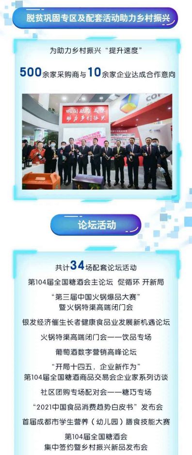 本屆糖酒會舉辦期間,共計(jì)34場配套論壇活動在中國西部國際博覽城舉辦。其中,既有關(guān)于行業(yè)大勢、消費(fèi)趨勢、高質(zhì)量發(fā)展、養(yǎng)老健康食品、數(shù)字營銷、智能制造、渠道運(yùn)營、包裝創(chuàng)新等主題,偏向思想交流和信息分享性質(zhì)的論壇和研討會類活動。同時,也舉辦了集中簽約暨鄉(xiāng)村振興新品發(fā)布會、選品會及供采對接會等多場產(chǎn)銷對接活動,強(qiáng)化全國糖酒會交易洽談的核心功能,助力經(jīng)銷商高效選品實(shí)戰(zhàn)。