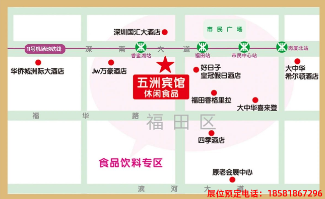 位于深圳市福田區(qū)中心區(qū),周邊6個布展酒店,食品布展酒店龍頭: