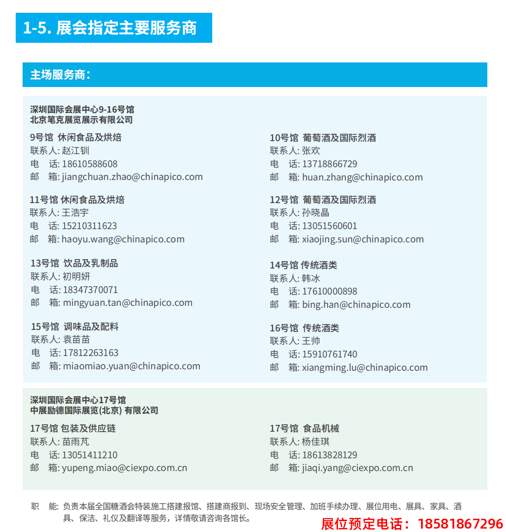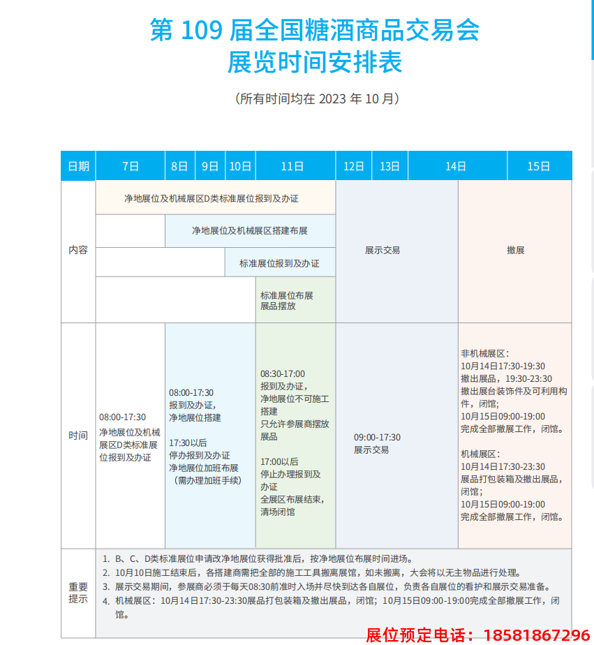 歡迎參加第 109 屆全國(guó)糖酒商品交易會(huì)!我們編輯了第 109 屆全國(guó)糖酒商品交易會(huì)參展商手冊(cè)以便幫助您做好展前準(zhǔn)備工作。我們建議參展商和各服務(wù)商仔細(xì)閱讀手冊(cè),并遵守各項(xiàng)規(guī)定及服務(wù)的申請(qǐng)截止日期。我們的服務(wù)包括如下分類,并附有相關(guān)信息和申請(qǐng)表格: